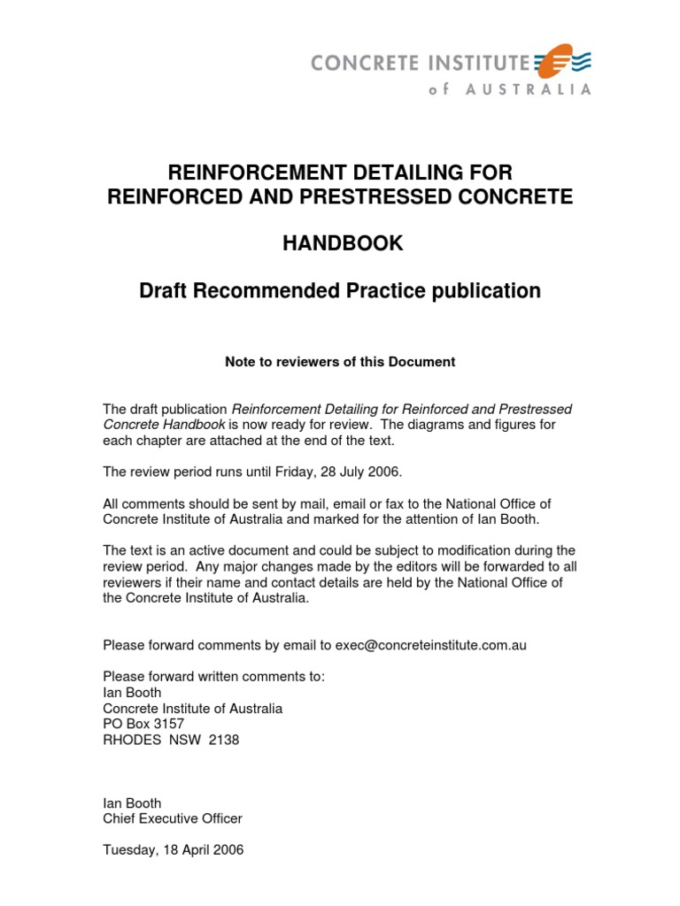Draft Reinforcement Detailing Handbook Complete Version Pr Incl Figs Prestressed Concrete Specification Technical Standard Dom Perignon Cena