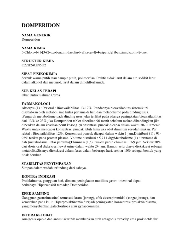 Efek samping yang umum terjadi diantaranya. 3 x sehari 1 2 tablet sebaiknya konsumsi obat ini 15 30 menit sebelum makan dan sebelum tidur malam. Domperidone dalam bentuk sediaan sirup dan suspensi mengandung 5 mg domperidone untuk setiap 5 ml sedangkan bentuk sediaan drops mengandung domperidone sebanyak 5 mg per 1 ml.