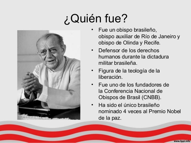 Fue uno de los fundadores de la conferencia nacional de obispos de brasil y defensor de los derechos humanos durante la dictadura militar brasilena. Helder pessoa camara futuramente dom helder camara nasceu em fortaleza no dia 7 de fevereiro de 1909 em uma familia pobre de treze filhos dos quais ele era o decimo primeiro. Foi o brasileiro por mais vezes indicado ao premio nobel da paz com quatro indicacoes.
