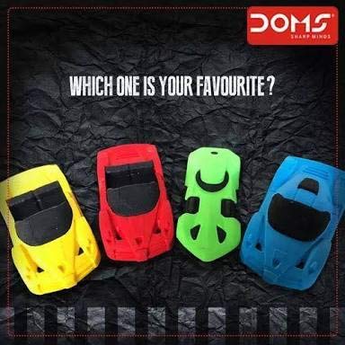 Doms sport car eraser pack of 12. Doms sharpener in box or jar. Prices are inclusive of applicable taxes.