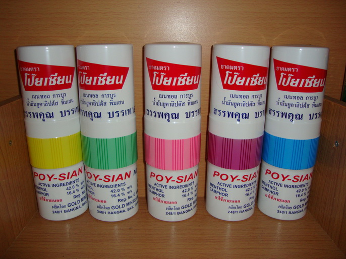 Menthol camphor eucalyptus oil borneol. It is widely used in thailand to help clear a blocked nose calm the nervous system and reduce the symptoms associated with sickness and dizziness. Nasal inhaler ya dom poy sian is a two in one tiny bottle.